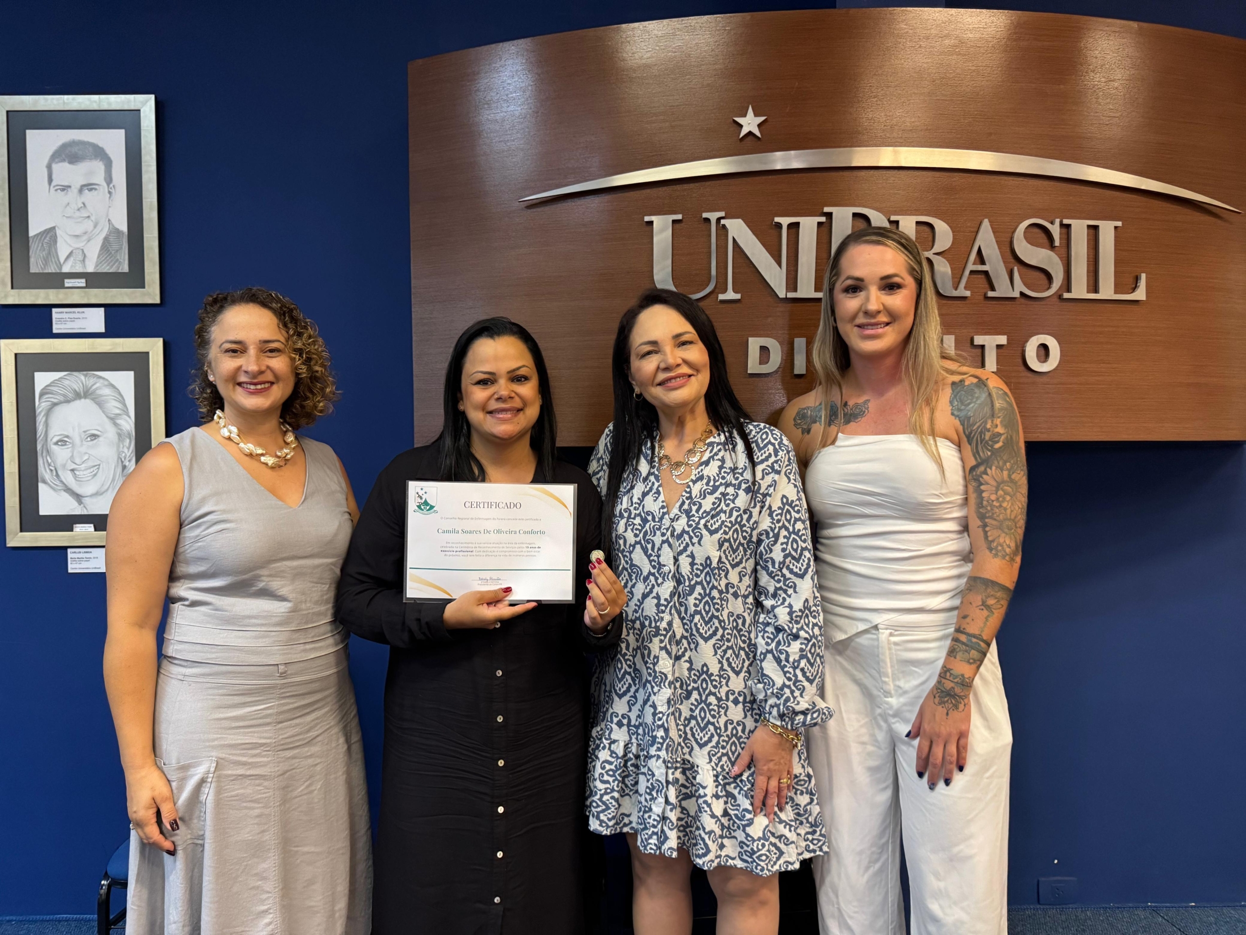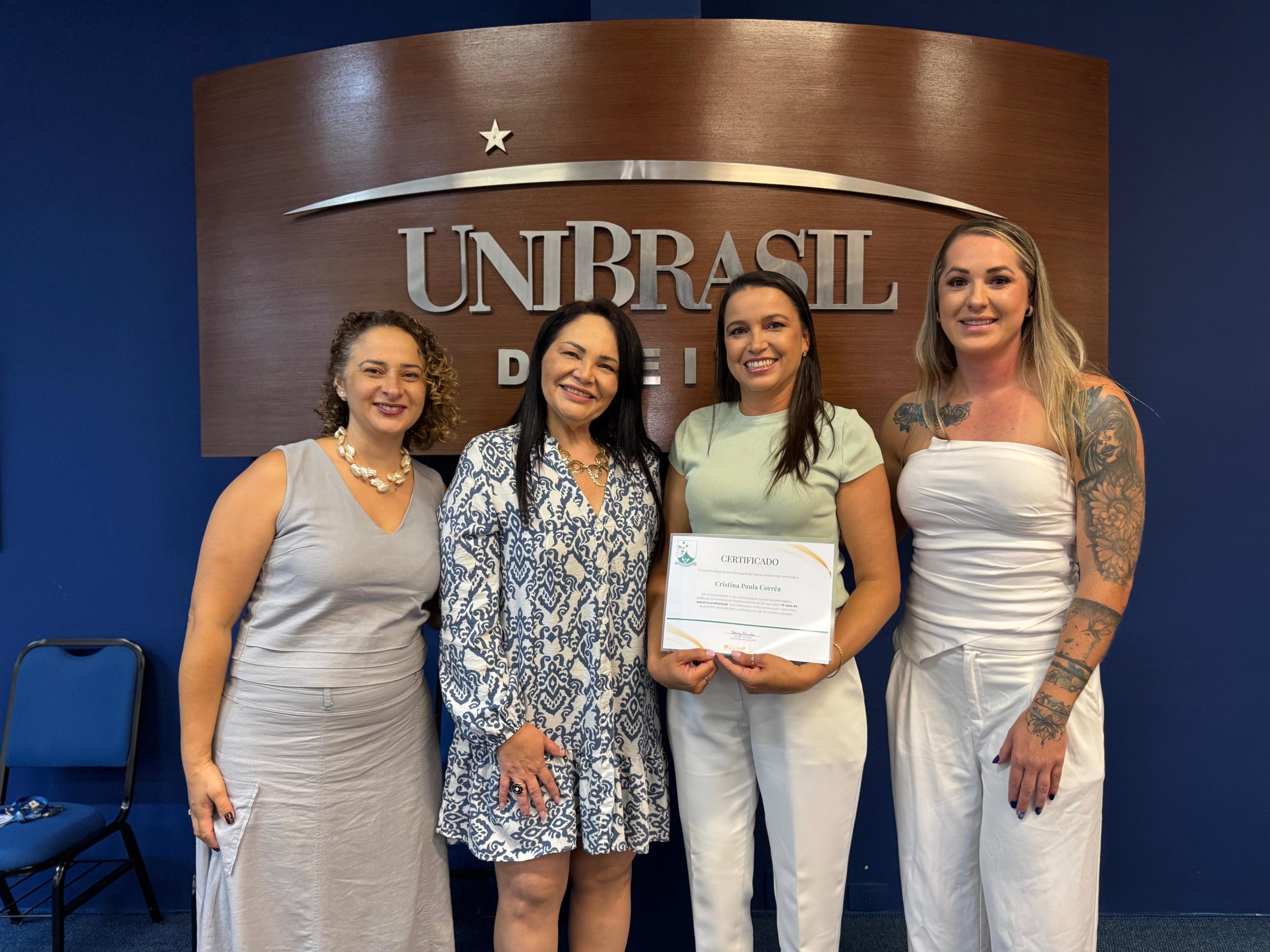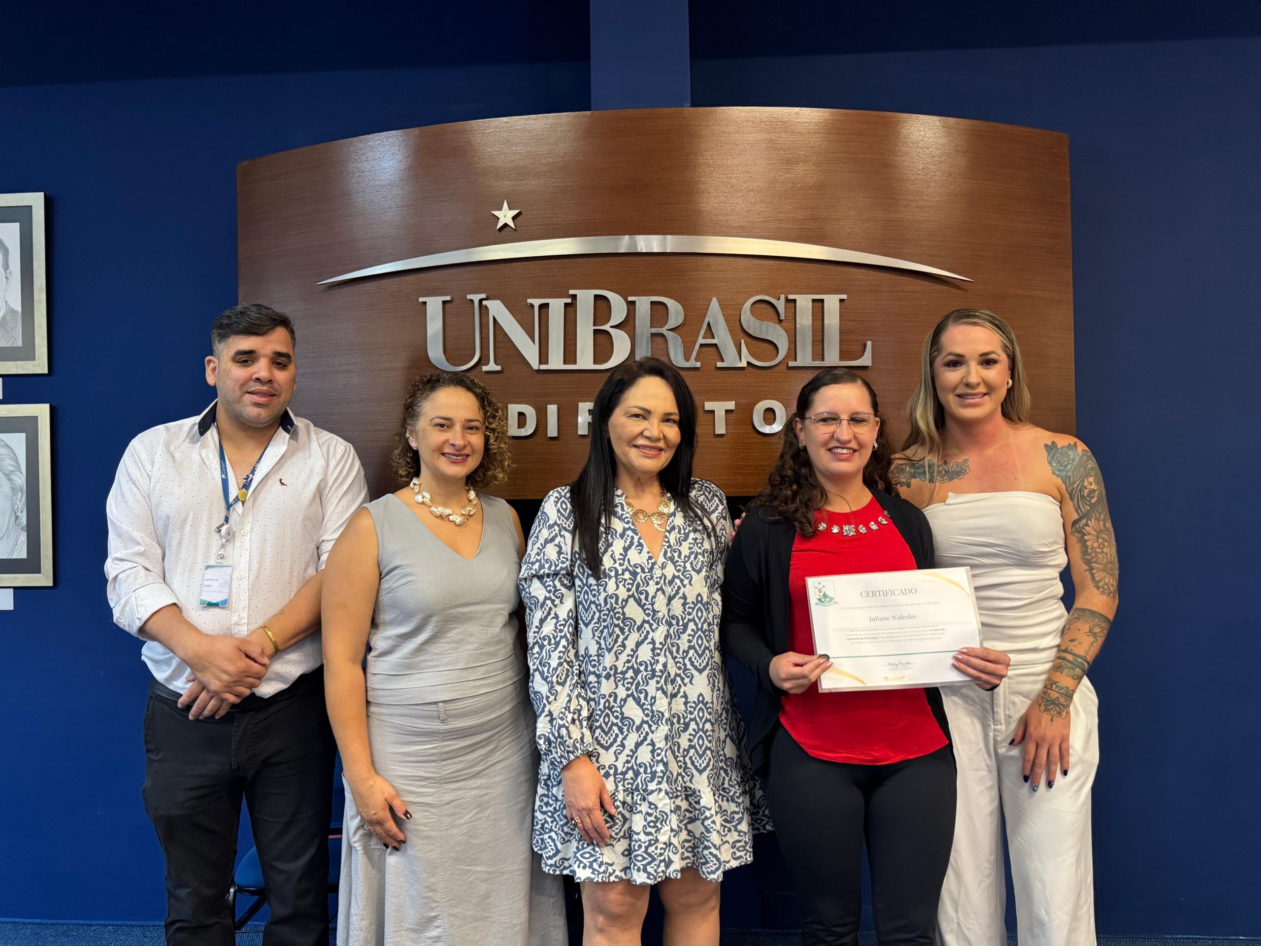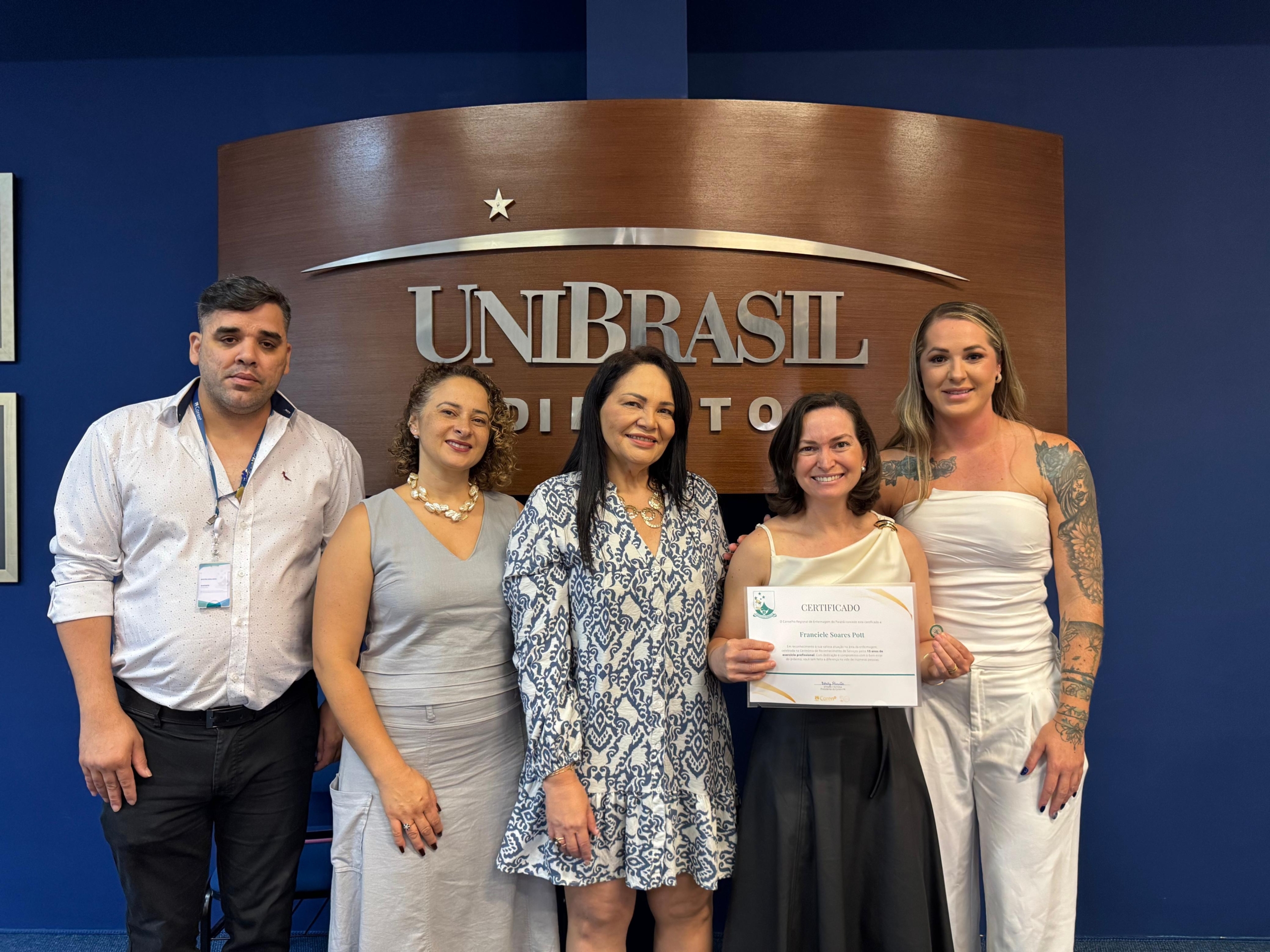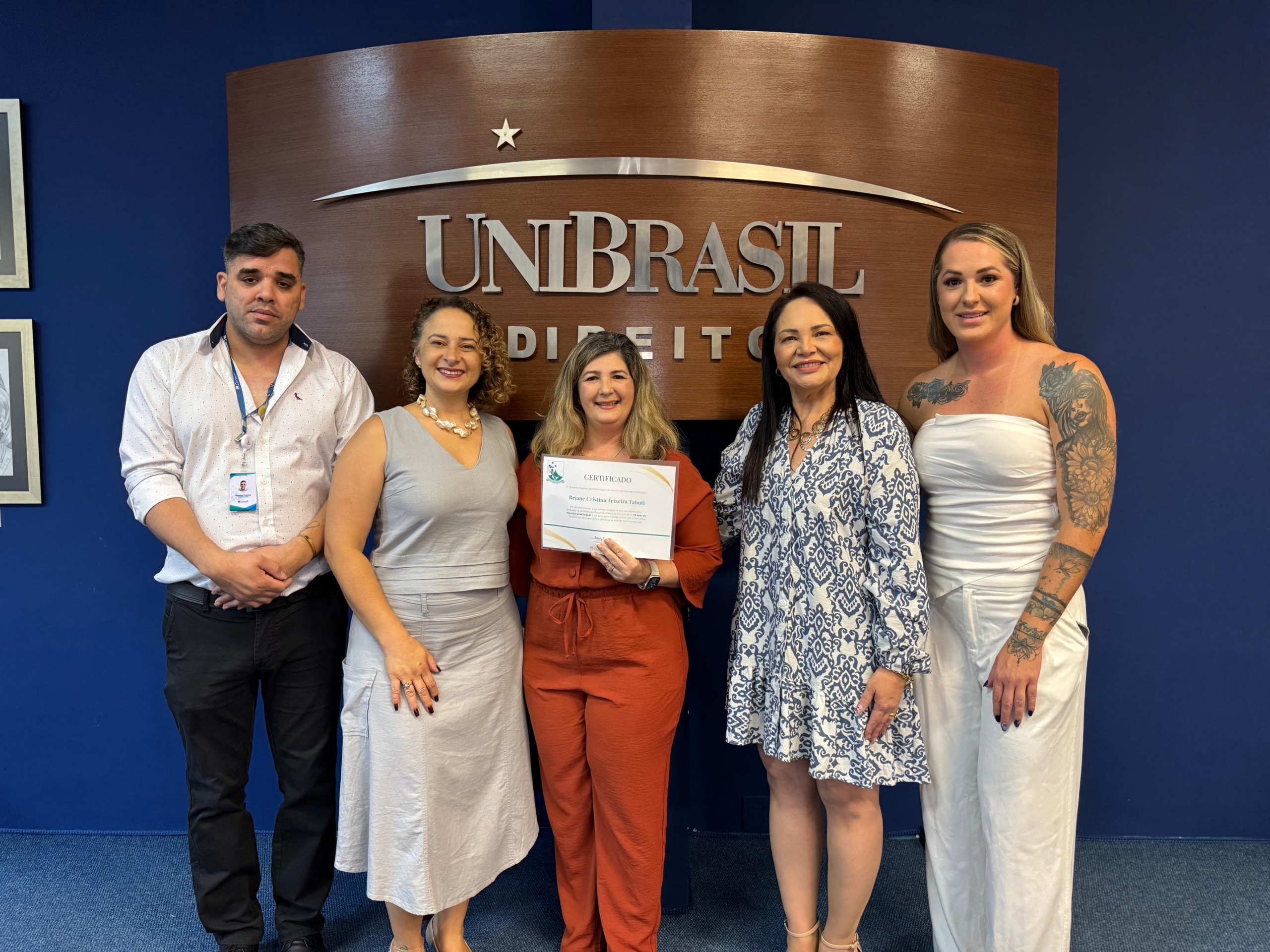 Ainda, participaram da cerimônia a enfermeira e diretora do Centro de Controle, Avaliação e Auditoria da Secretaria Municipal de Saúde de Curitiba Juliana Pinho, a pró-reitora acadêmica da UniBrasil Márcia Coelho e a professora do curso de Enfermagem Ana Dezoti.