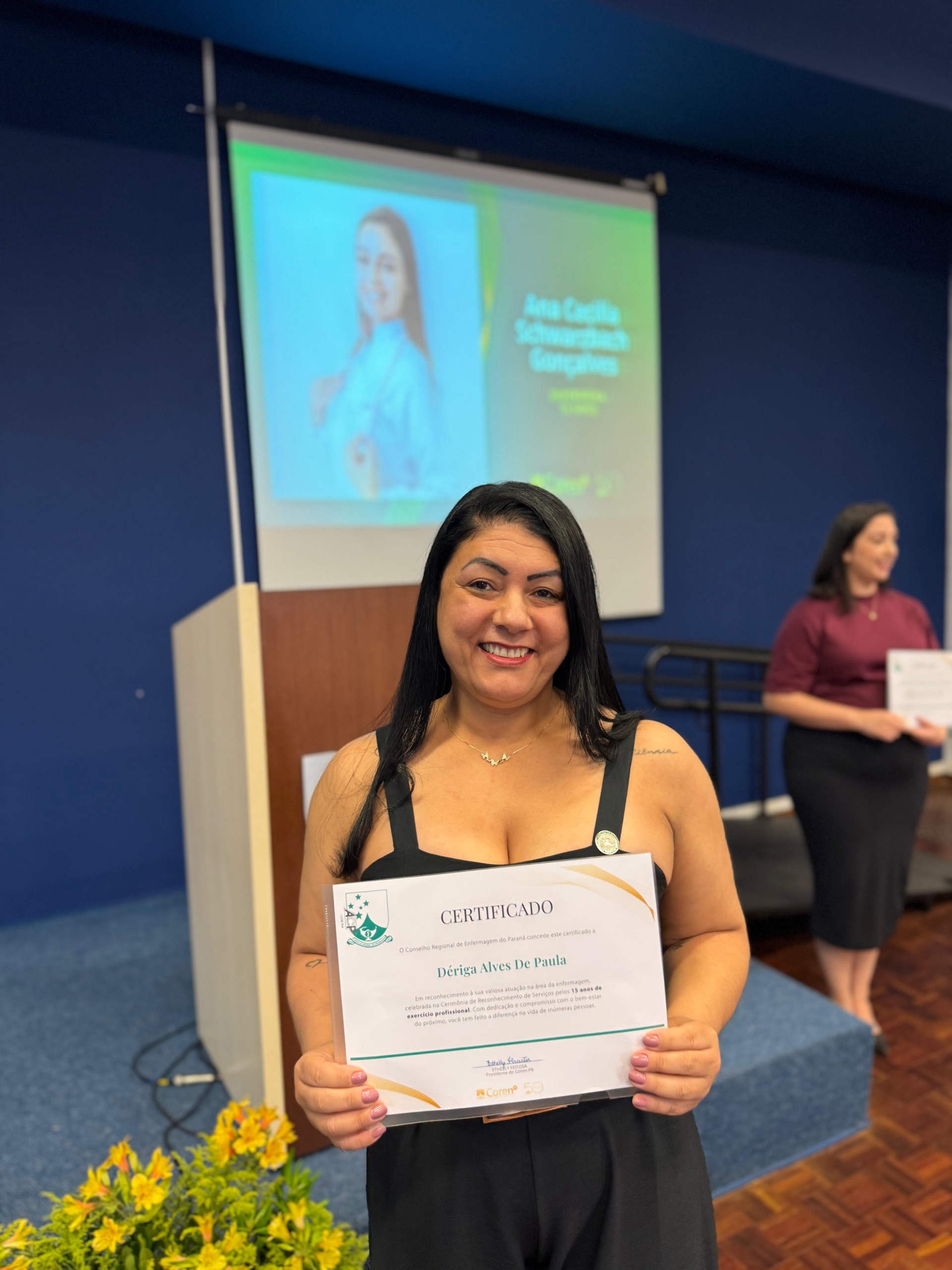 A Secretária do Coren PR, Daniele Fabris, também ressaltou o significado do momento. “Cada profissional aqui homenageado carrega consigo uma história que ultrapassa técnicas ou rotinas: são histórias de coragem, dedicação diária, compromisso e humanidade. Histórias que se entrelaçam com a própria evolução da enfermagem no nosso estado. Neste jubileu de ouro do coren paraná, é impossível não reconhecer que o caminho até aqui só foi possível porque profissionais como vocês sustentaram, dia após dia, a qualidade e o cuidado da saúde que a sociedade paranaense merece”, disse.
