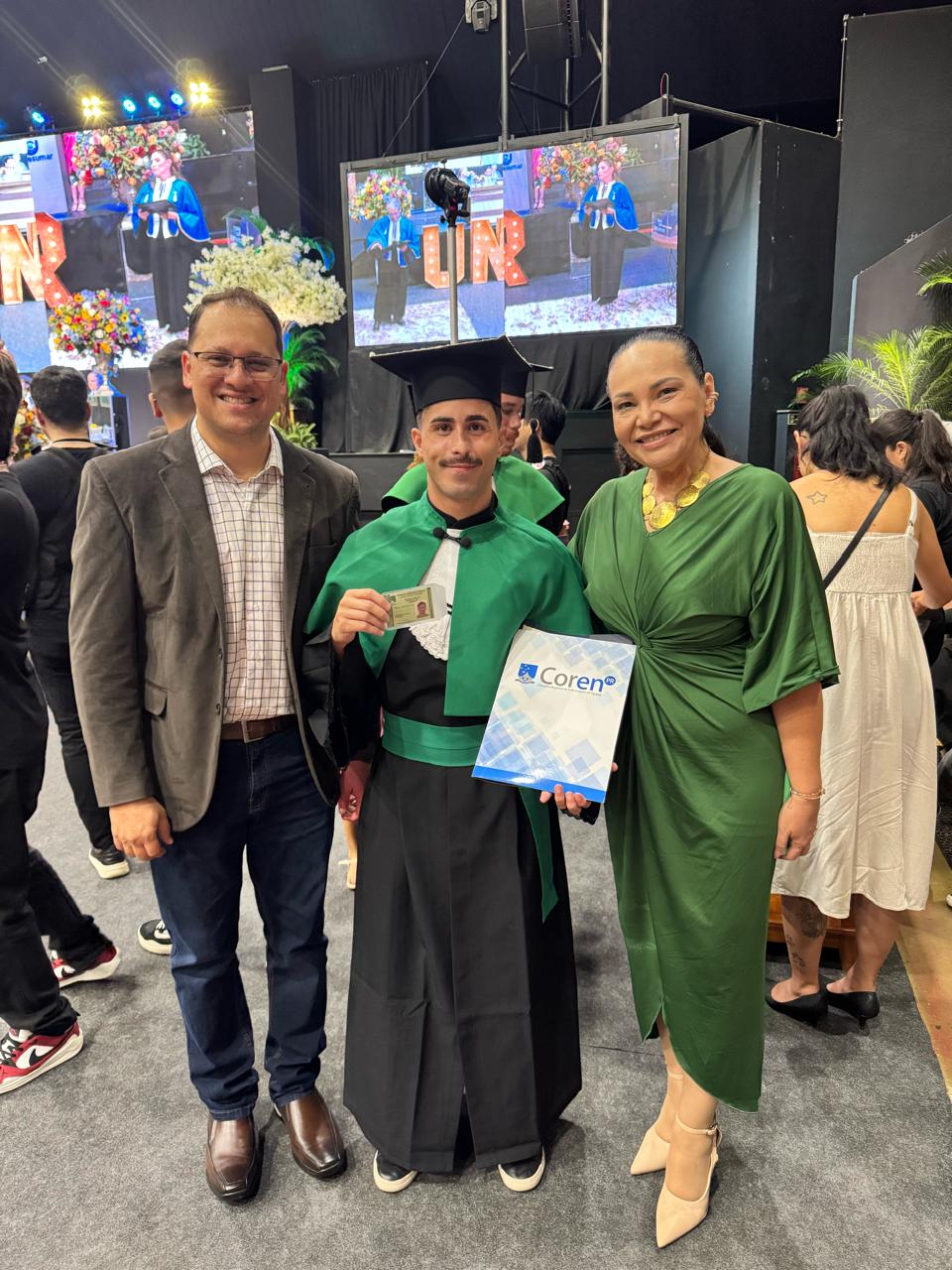 O Conselho Regional de Enfermagem do Paraná (Coren-PR) vem atuando de forma contínua no acolhimento, na integração e na orientação dos novos profissionais de Enfermagem. Reforçando esse compromisso, a presidente Ethelly Feitosa e o conselheiro Jean Costa estiveram, nesta quinta-feira (5/2), na colação de grau dos concluintes do curso de graduação em Enfermagem da UniCesumar de Maringá e realizaram durante a solenidade a entrega das Carteiras de Identidade Profissional (CIPs).