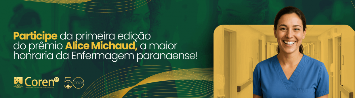 O Conselho Regional de Enfermagem do Paraná (Coren PR) anuncia a abertura do Edital da primeira edição do prêmio Alice Michaud, a maior honraria da categoria no estado, destinada a reconhecer profissionais de Enfermagem paranaenses que se destacaram no exercício da profissão. Serão homenageados enfermeiros, técnicos, auxiliares e obstetrizes nas áreas da Assistência, da Gestão, do Ensino e da Representação Profissional. As inscrições estão abertas até o dia 29 de setembro. Acesse a página e saiba todos os detalhes clicando aqui.