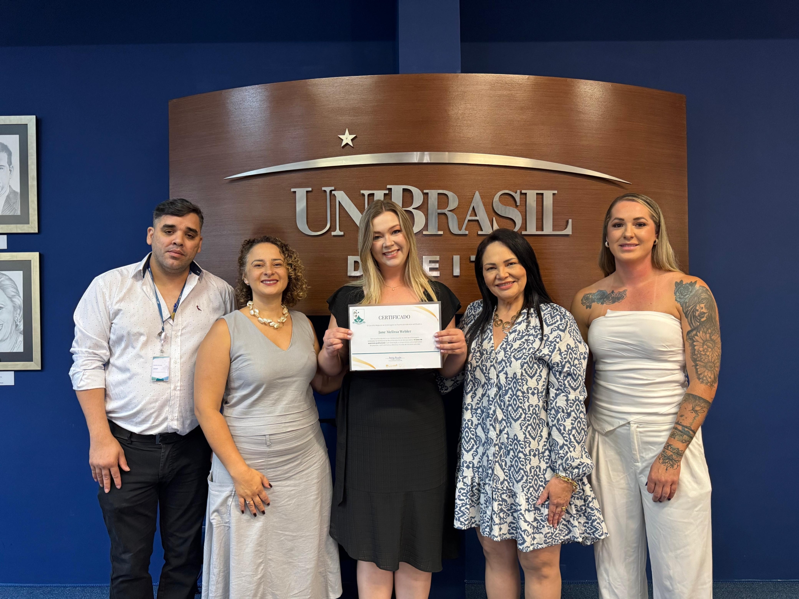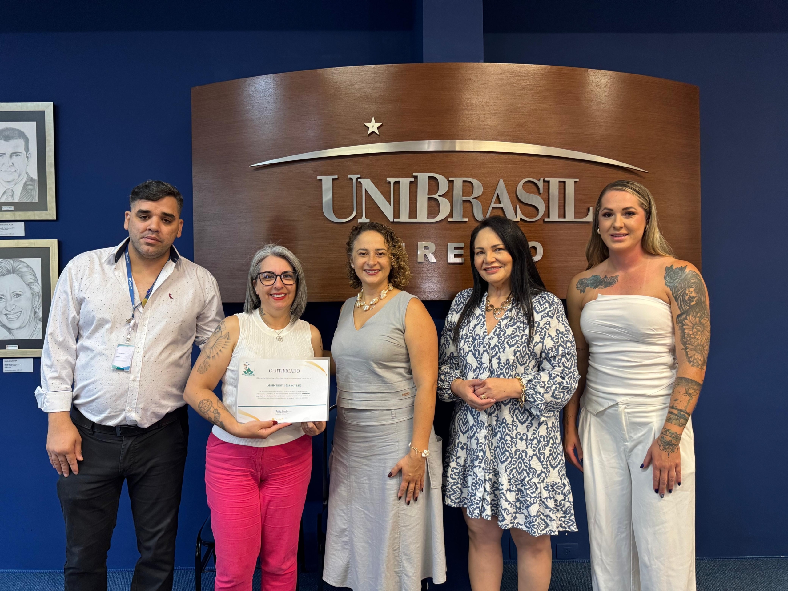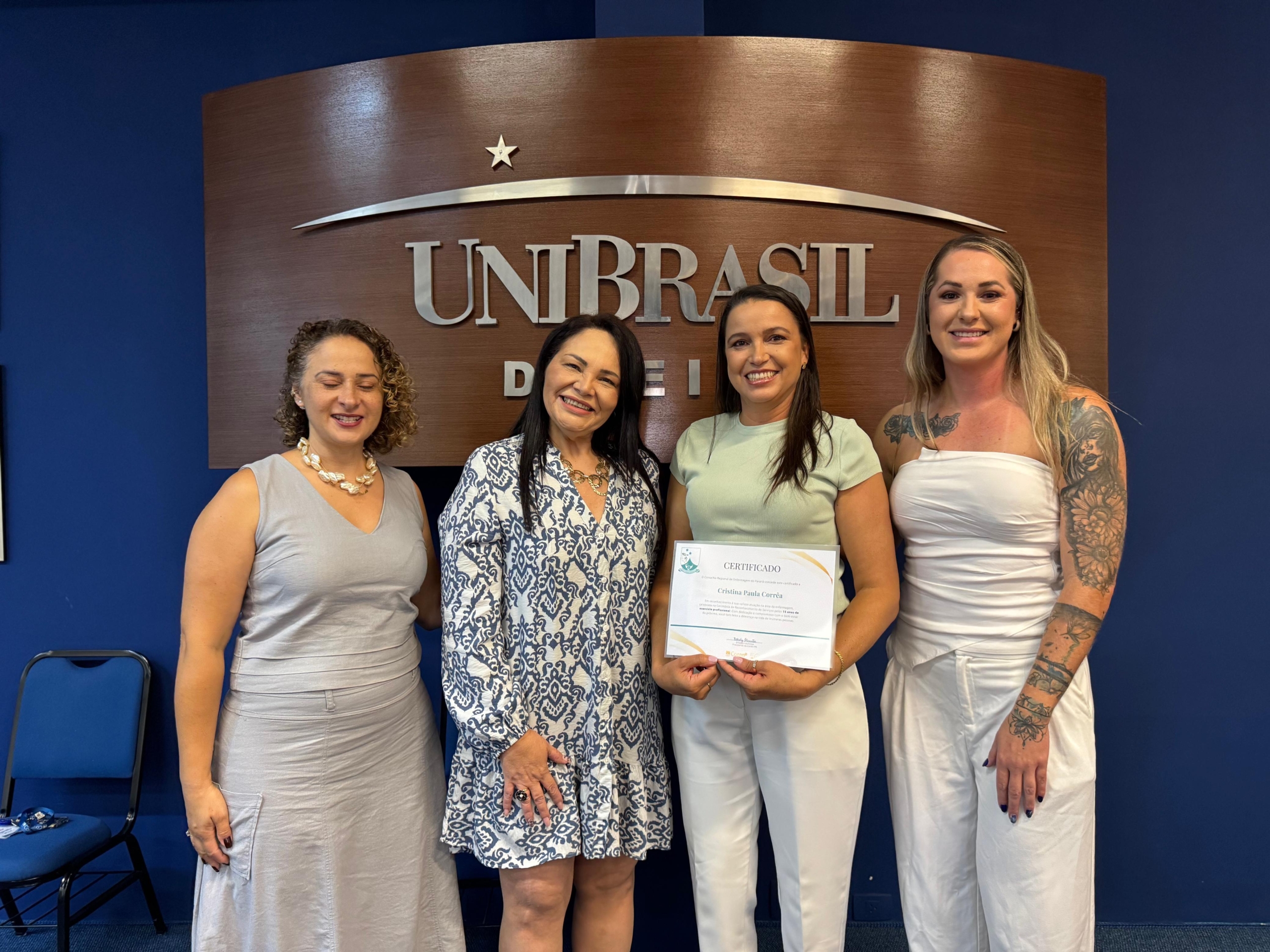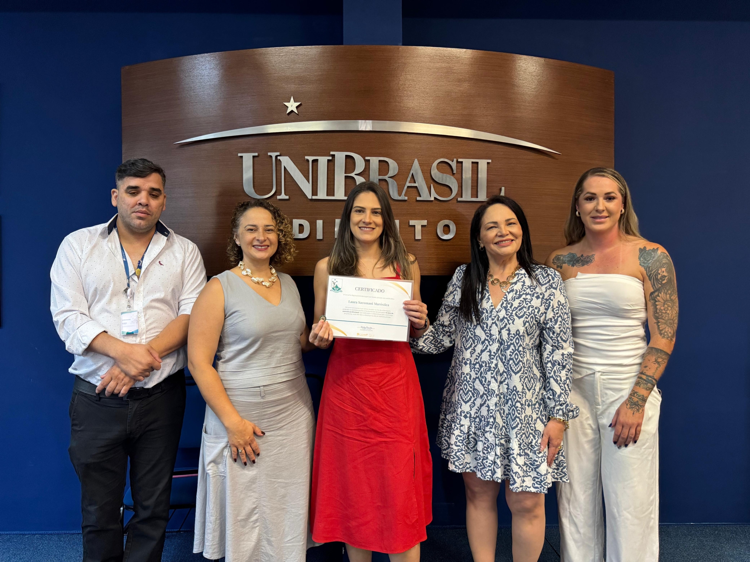 Ainda, participaram da cerimônia a enfermeira e diretora do Centro de Controle, Avaliação e Auditoria da Secretaria Municipal de Saúde de Curitiba Juliana Pinho, a pró-reitora acadêmica da UniBrasil Márcia Coelho e a professora do curso de Enfermagem Ana Dezoti.